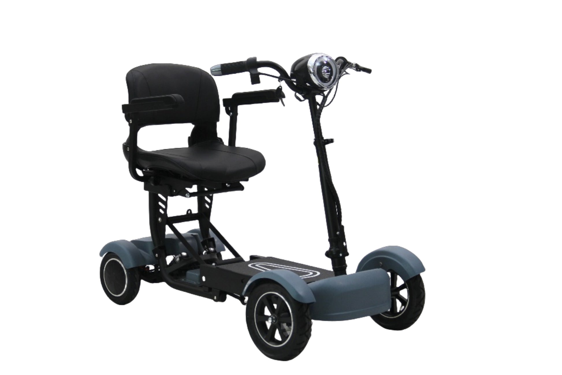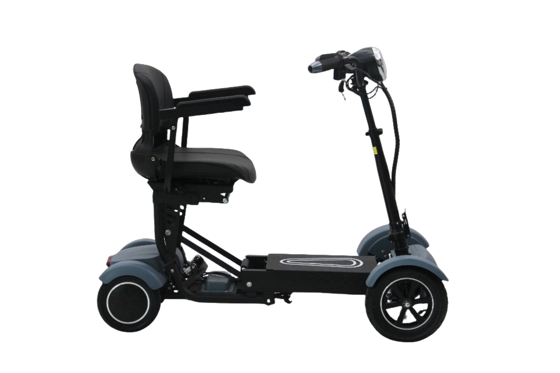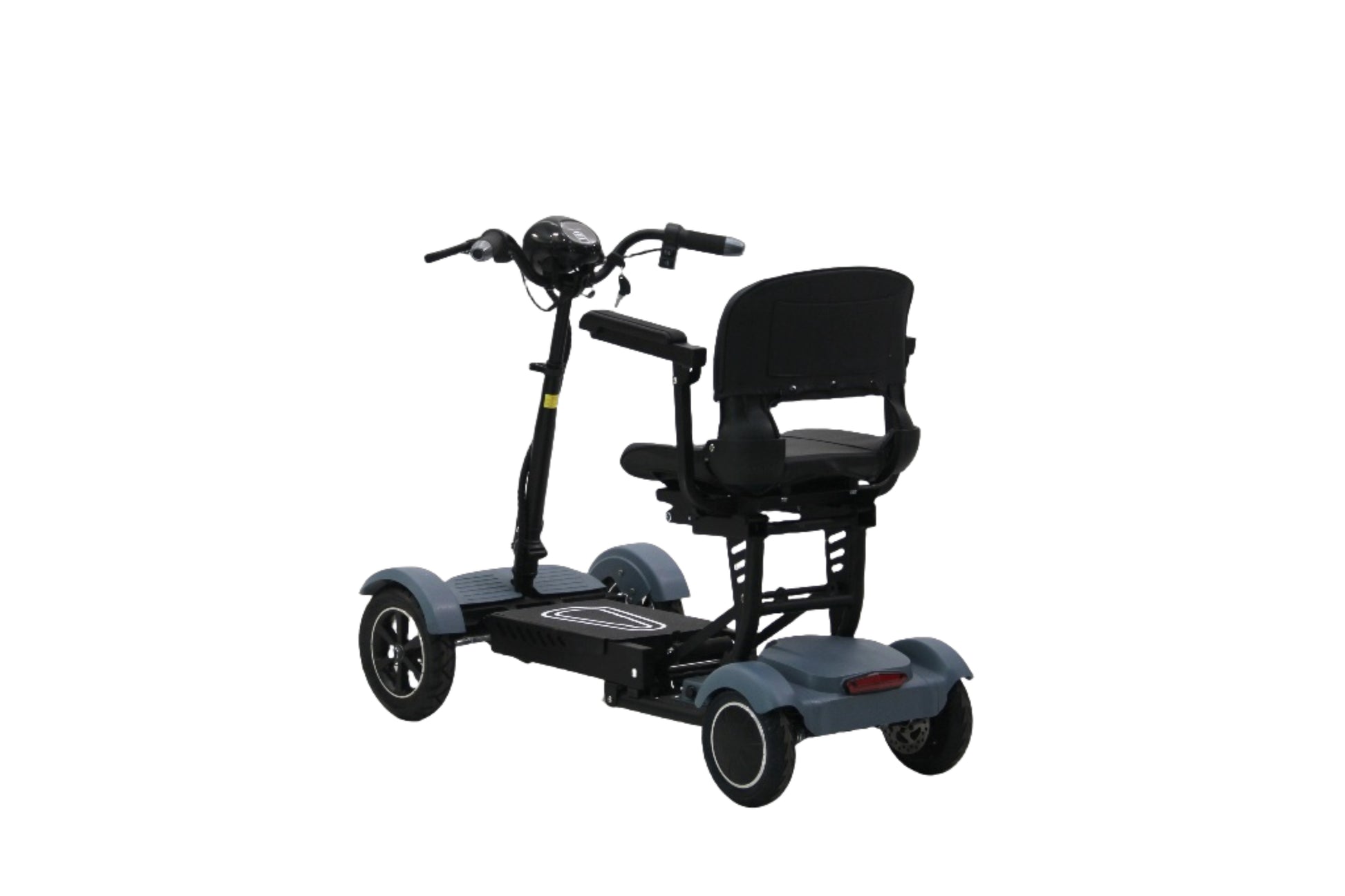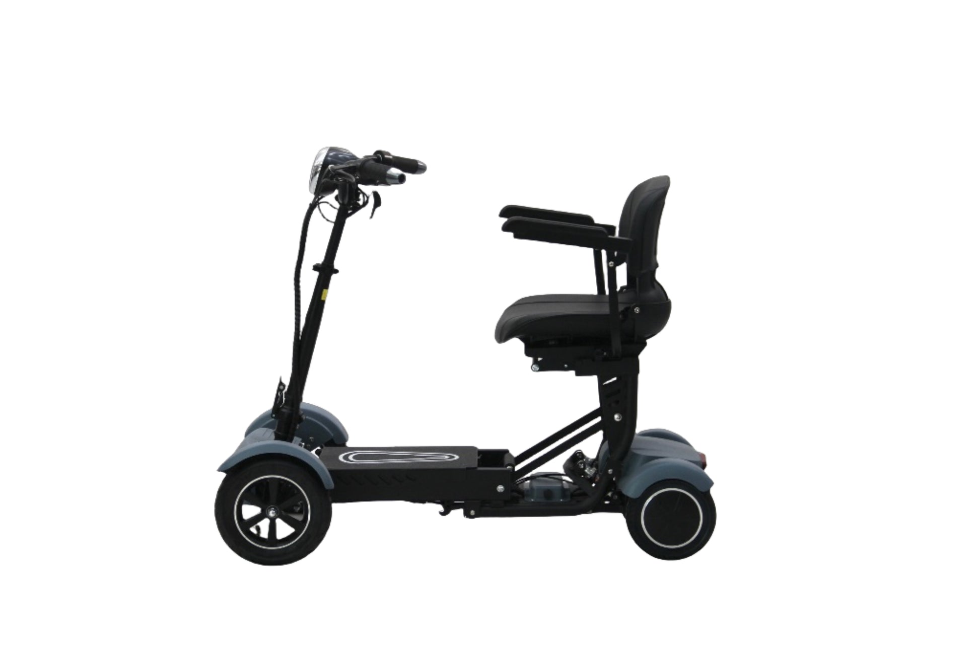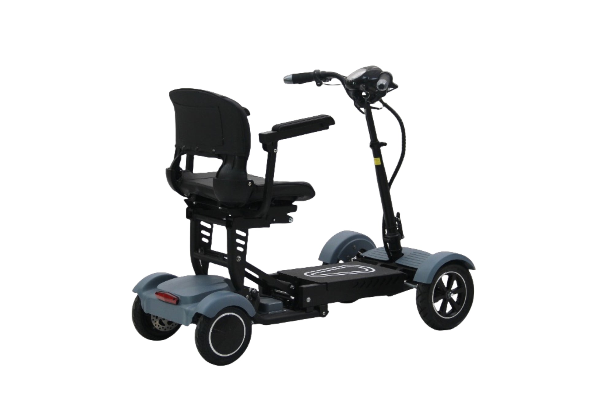 MS-4 er en moderne 4-hjulet elscooter, designet til komfort, stabilitet og nem transport. Den kompakte og foldbare mobilitetsscooter gør det let at tage scooteren med i bilen eller opbevare den derhjemme. Med fire hjul får du ekstra stabilitet og sikkerhed, hvilket gør den ideel til både ældre og personer med nedsat mobilitet.
