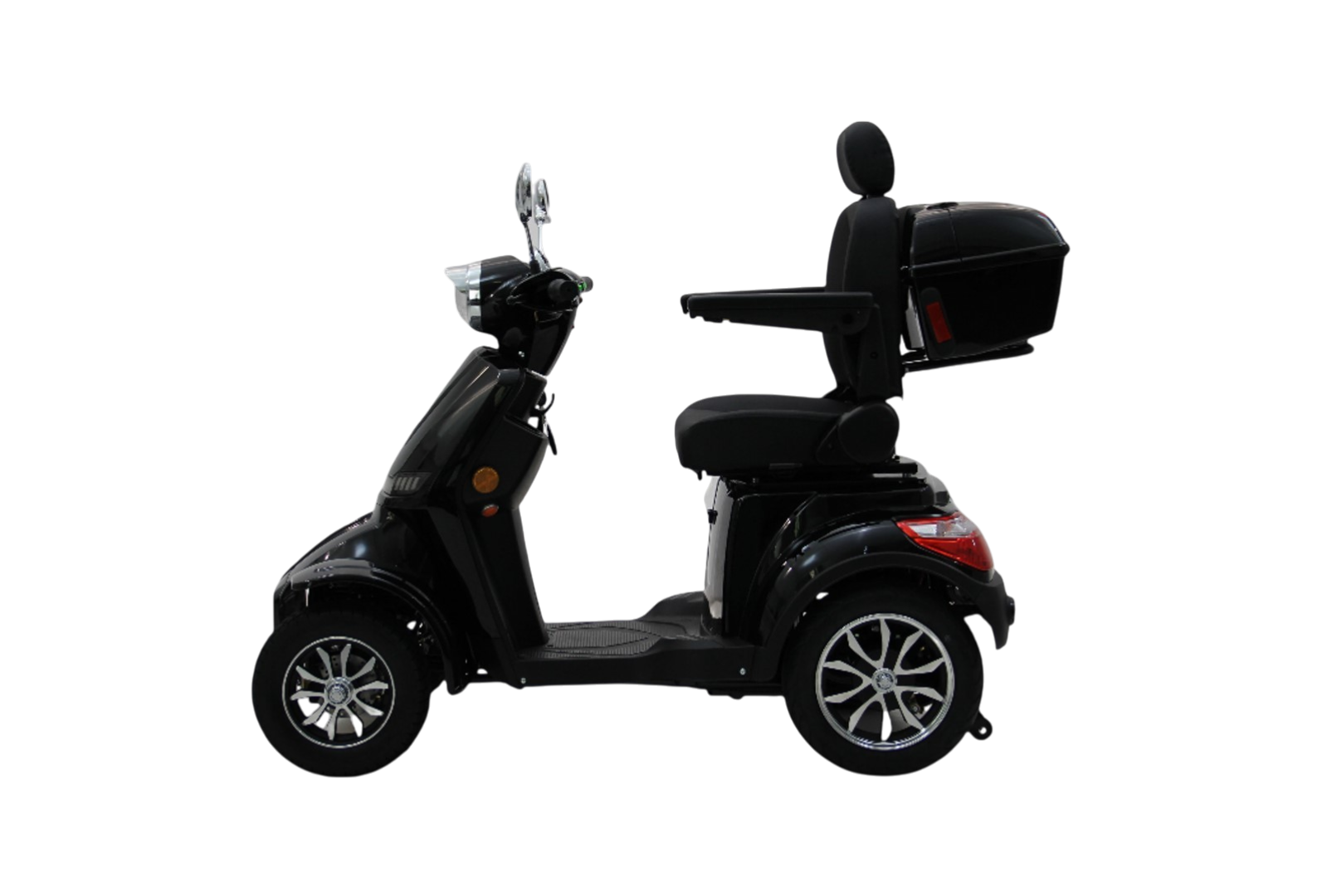 En elscooter med 4 hjul giver ekstra stabilitet og sikkerhed sammenlignet med mange andre mobilitetsscootere. Den stabile konstruktion gør den lettere at styre og giver en mere tryg køreoplevelse.
