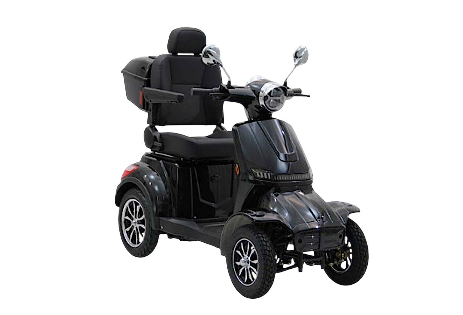 Denne sorte 4-hjulede mobilitetsscooter er en praktisk løsning for alle, der ønsker en stabil og komfortabel måde at komme rundt på. Kombinationen af kraftig motor, lang rækkevidde og solid konstruktion gør scooteren til et pålideligt transportmiddel i hverdagen.